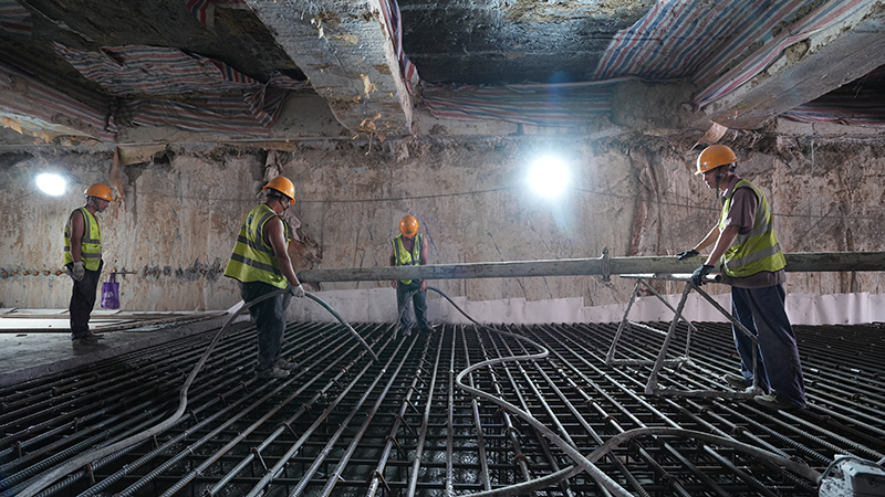 自2021年7月車站主體結構正式進入施工以來,歷時357天完成主體結構封頂,在面對各工程交錯施工帶來的風險高、難度大、施工作業(yè)面狹小、地下管線眾多、施工組織復雜、工期緊等因素影響,項目部不等不靠,見縫插針,積極與各管線產權單位協(xié)調,不斷優(yōu)化管線遷改和交通疏解方案。在前期技術準備、質量控制、安全措施和應急預案等方面做了全面部署,多次組織專家進行方案優(yōu)化論證。
