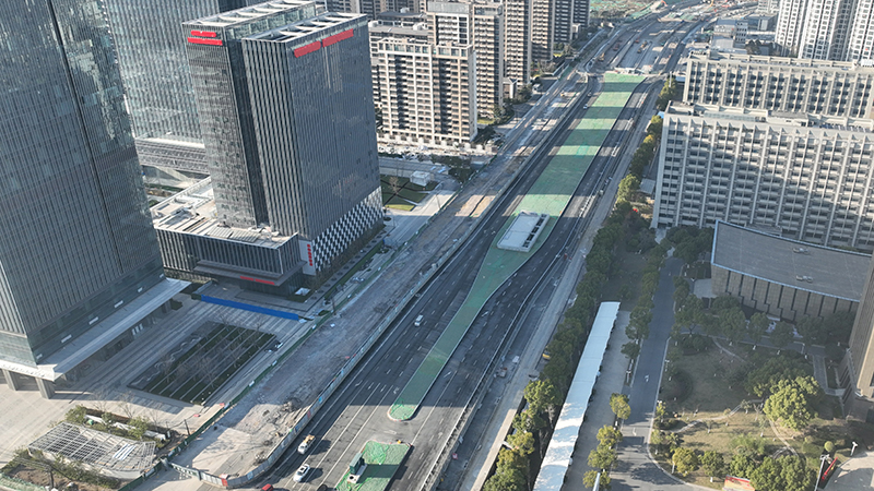 宿松路下穿地道全長(zhǎng)1251.3m,其中北側(cè)敞口段136.3m,暗埋段長(zhǎng)975m;南側(cè)敞口段長(zhǎng)140m,共42個(gè)節(jié)段。與繁華大道十字相交段的雙層下穿疊合段自3月14日開挖至今,歷時(shí)283天,實(shí)現(xiàn)宿松路下穿地道結(jié)構(gòu)貫通,比計(jì)劃工期提前160天!