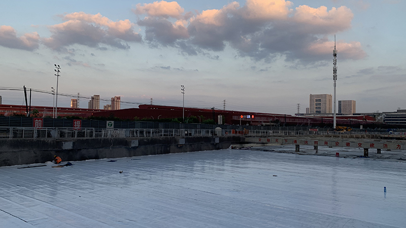 宿松路快速化改造工程地處城市建成區(qū),周邊環(huán)境復(fù)雜,施工面臨地下管網(wǎng)縱橫交錯(cuò)、基坑開挖深度大、結(jié)構(gòu)防裂、防水要求高等難題。面對(duì)復(fù)雜而苛刻的條件,安徽交建項(xiàng)目部實(shí)現(xiàn)了多項(xiàng)行業(yè)“首創(chuàng)”:針對(duì)市政干作業(yè)基坑圍護(hù)樁垂直度控制不佳,我部采購(gòu)2臺(tái)RSM-HGT(D)型超聲波成孔質(zhì)量檢測(cè)儀對(duì)樁基垂直進(jìn)行檢測(cè)、及時(shí)糾偏;施工過程中使用全站儀對(duì)旋挖鉆機(jī)桅桿垂直度進(jìn)行檢查、糾偏;為有效控制地道側(cè)墻混凝土裂縫,選擇摻加ART-MPC無(wú)機(jī)納米抗裂密實(shí)劑,提高混凝土抗裂性。養(yǎng)護(hù)采用水能量節(jié)水保濕養(yǎng)護(hù)膜,將液態(tài)水轉(zhuǎn)化為固態(tài)水,通過毛細(xì)管作用,源源不斷的向養(yǎng)護(hù)面滲透,同時(shí)吸收砼水化熱過程中蒸發(fā)水,在一個(gè)養(yǎng)護(hù)周期內(nèi)保證養(yǎng)護(hù)體表面保持濕潤(rùn),相對(duì)濕度≥90%;為避免變形縫滲水情況,施工過程中增設(shè)一道中埋式止水帶。同時(shí)針對(duì)止水帶安裝及焊接等薄弱環(huán)節(jié)加強(qiáng)控制,安排固定人員培訓(xùn),舉辦焊接比賽,提升焊接技術(shù)。