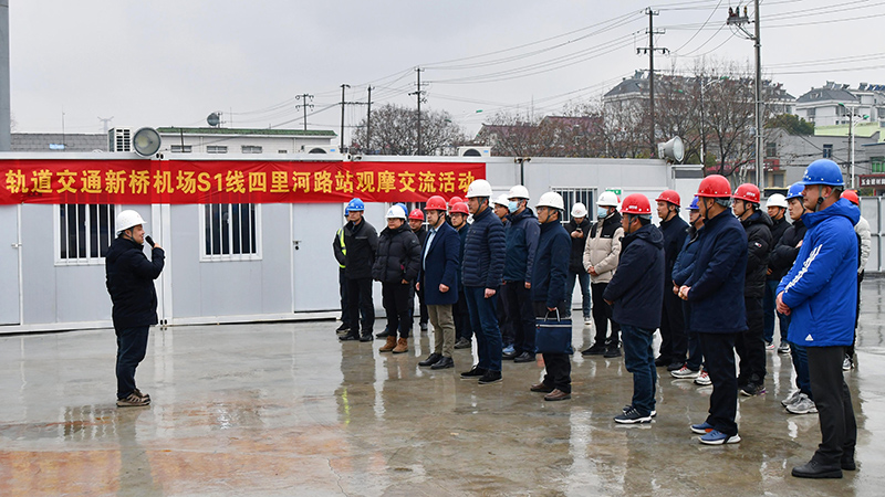 下午15:00,參會人員40余人到達(dá)觀摩現(xiàn)場,軌道質(zhì)監(jiān)站總工陳曉明做活動啟動講話。參會人員現(xiàn)場參觀了四里河路站場地布置、揚塵防治、安全文明施工管理等內(nèi)容,聽取了項目經(jīng)理王飛相關(guān)經(jīng)驗介紹,并進(jìn)行交流。