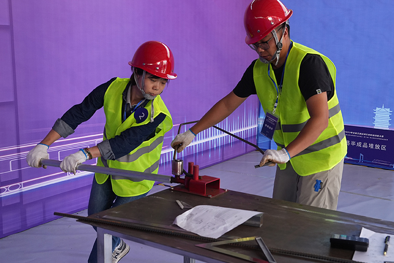 賽場上,王旭東、周蓉兩位選手沉著迎戰(zhàn)、不畏強手,信心十足地快速準(zhǔn)確切割鋼筋,沉著地檢測模擬構(gòu)件的缺陷,全神貫注地使用儀器進行施工放樣,每個項目每個環(huán)節(jié)均都能從容面對,展示了交建人扎實的技能功底和良好的心理素質(zhì)。