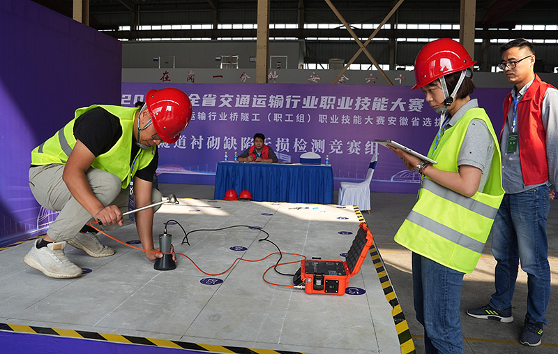據(jù)悉,此次大賽由安徽省交通運輸廳、安徽省人力資源和社會保障廳共同舉辦。本次大賽共設(shè)置城市軌道交通行車調(diào)度員、新能源汽車維修工、橋隧工、電動港口裝卸機械司機4個職業(yè)賽項。比賽采取理論知識競賽和操作技能競賽相結(jié)合的方式,涵蓋了鋼筋骨架加工、隧道襯砌缺陷無損檢測、施工放樣3個競賽項目。