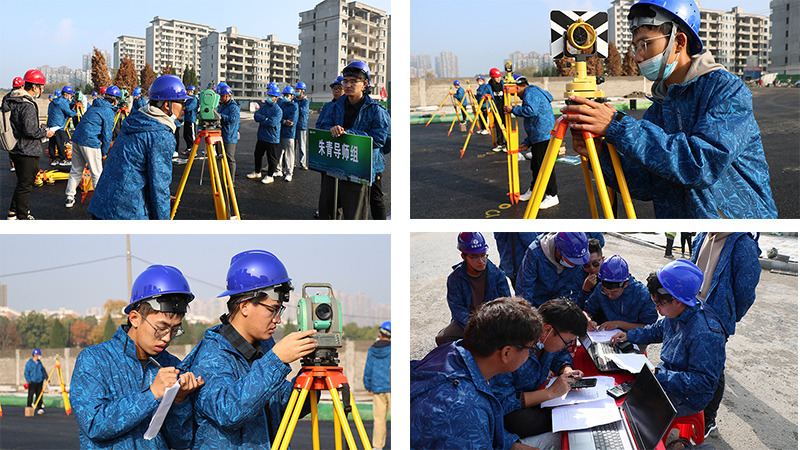 本次大賽分為測(cè)量理論知識(shí)考核和技能實(shí)操競(jìng)賽兩個(gè)部分。在理論考試中,各位學(xué)員邊思考邊答題,秩序井然。在“全站儀對(duì)點(diǎn)賽”和“水準(zhǔn)+全站”實(shí)操競(jìng)賽中,導(dǎo)師們通過抽簽,將身份轉(zhuǎn)換為裁判,對(duì)比賽進(jìn)行全程跟蹤。隨著總裁判的一聲令下,參賽學(xué)員們有條不紊地啟動(dòng)全站儀、水準(zhǔn)儀等測(cè)量?jī)x器設(shè)備。