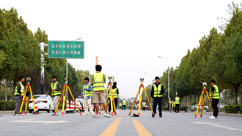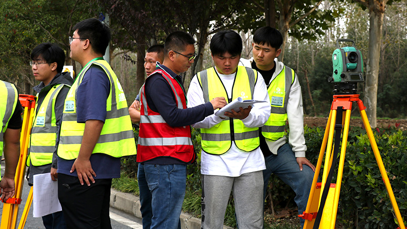 次日上午,在安徽交建大連路項目竣工封閉路段,學(xué)員早已準(zhǔn)備充分、躍躍欲試。在“全站儀對點賽”和“水準(zhǔn)+導(dǎo)線”技能競賽,導(dǎo)師互換小組以裁判的身份進(jìn)行全程跟蹤,依據(jù)各組完成時間、操作規(guī)范性、測量結(jié)果以及第一天的理論成績綜合評判最終結(jié)果。
