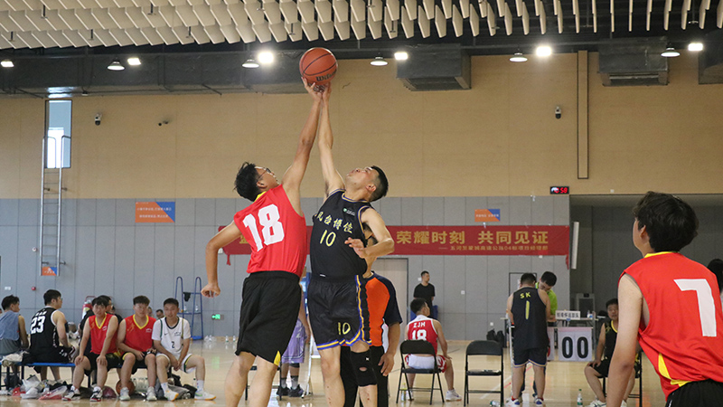 伴隨著裁判員的開場哨聲,高高拋起的籃球瞬間點燃了現(xiàn)場氣氛,隨之運動員們展開激烈的角逐。球場上,運動員們?nèi)缤酮{般發(fā)起沖鋒,精準傳接、緊逼防守,動作流暢而富有力量。