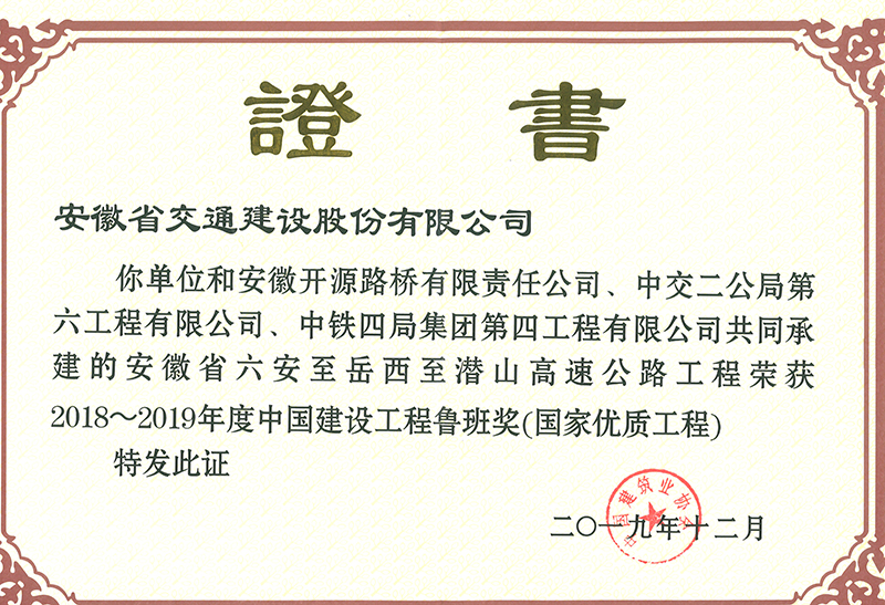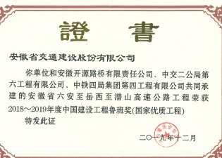2018~2019年度國家優(yōu)質(zhì)工程獎
